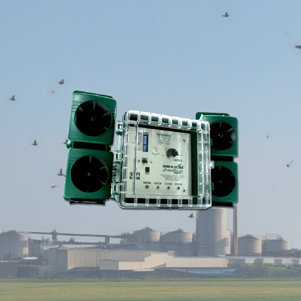 - Wide Coverage: Broadband pro using four speakers to provide a effective coverage area making it highly effective in keeping birds away from large industrial areas.